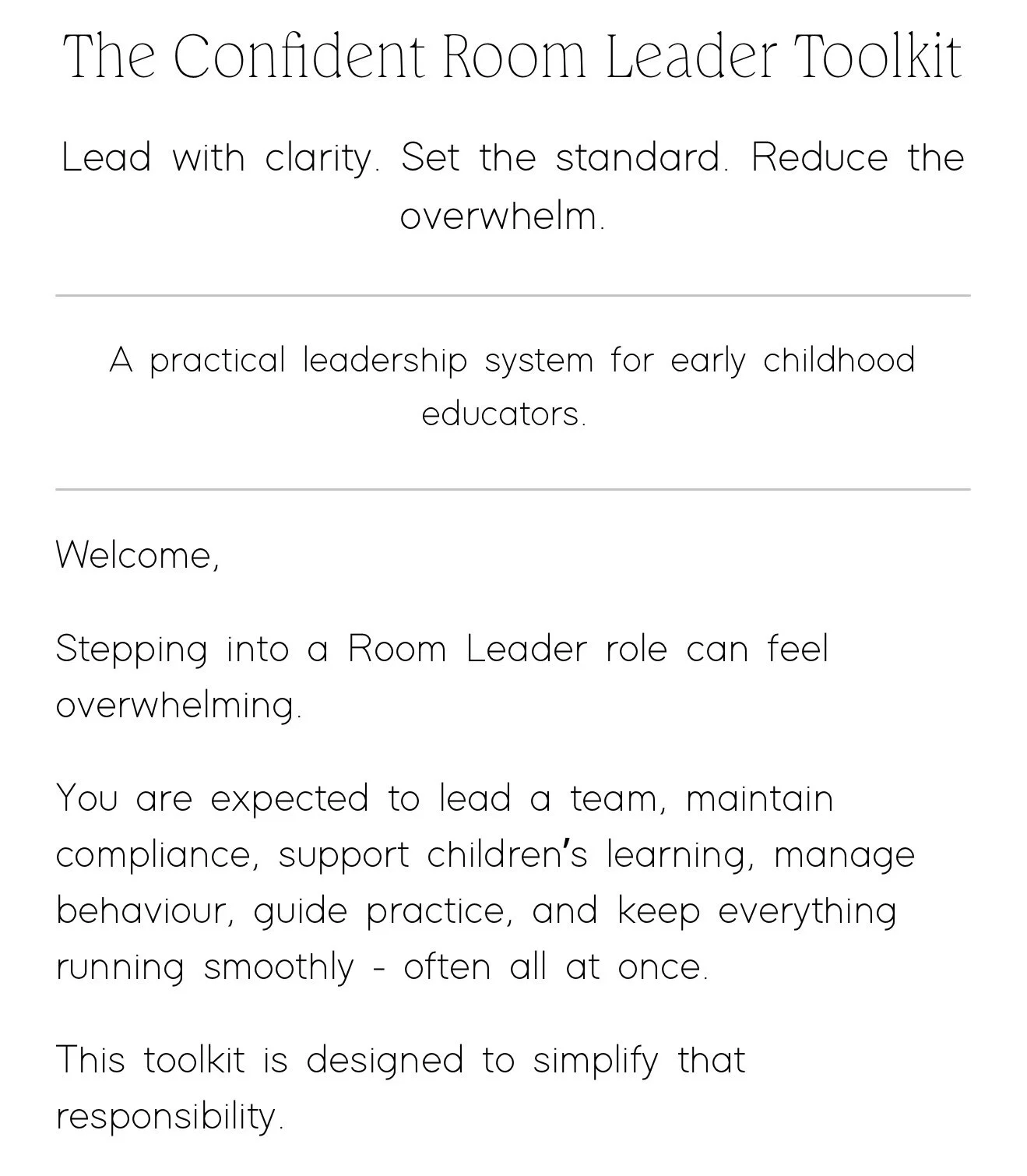 A practical, no-fluff toolkit designed to help Room Leaders know exactly what to focus on each day.